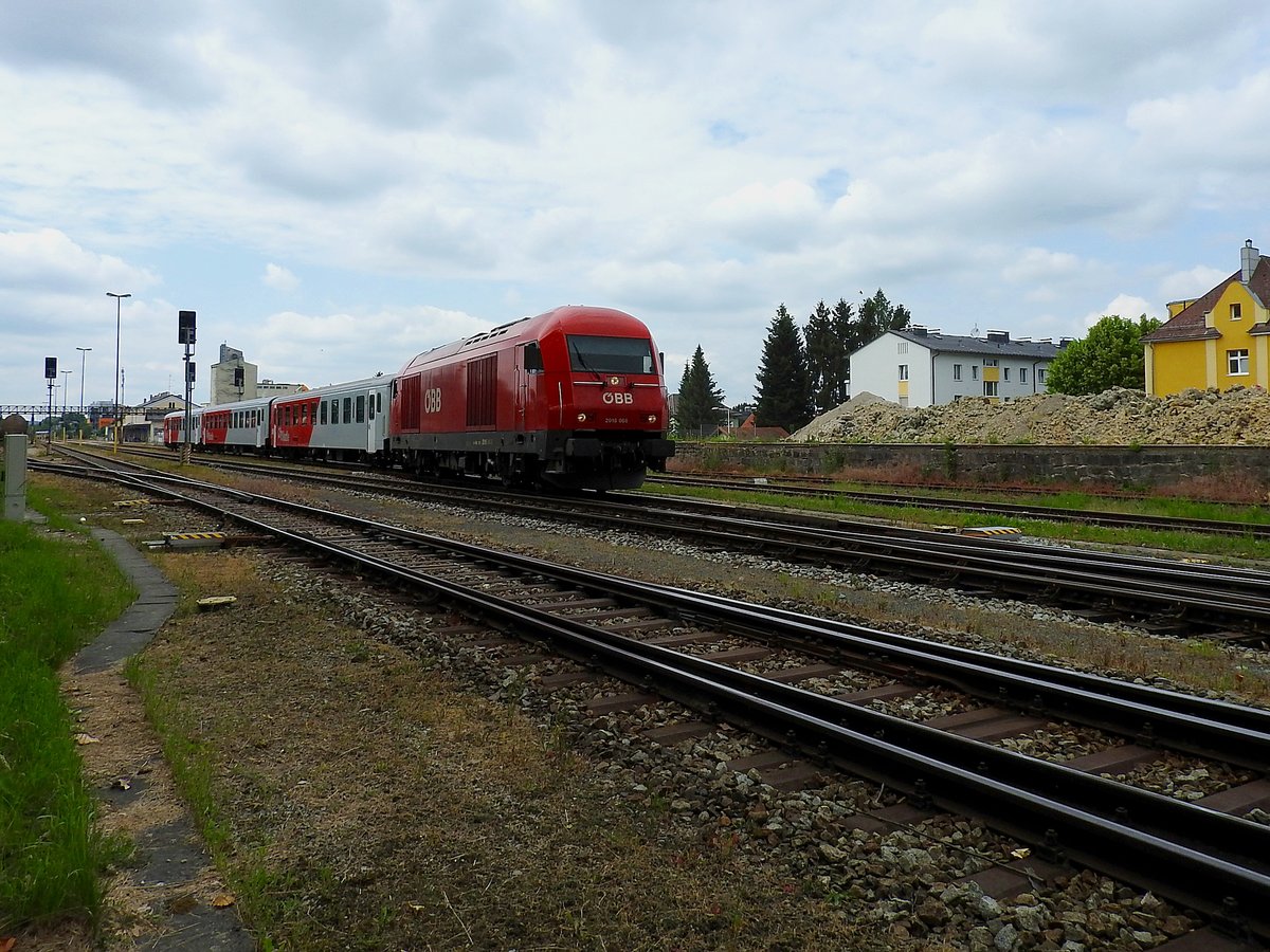 2016 066-9 verlässt mit R5973 den Bhf. Ried i.I. in Richtung Linz; 180601