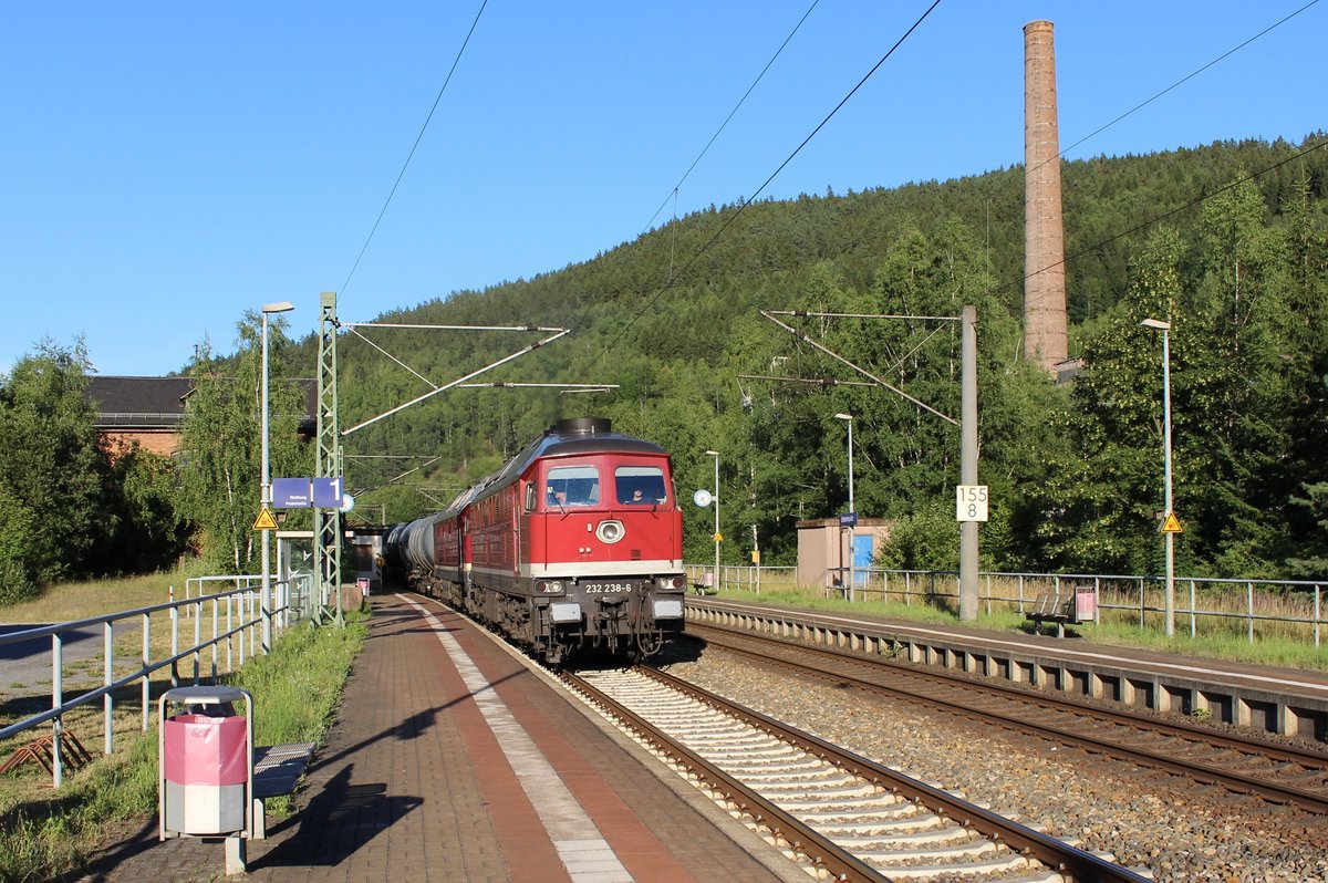 232 238-6 und 132 158-7 (LEG) fuhren am 03.07.18 einen Kesselzug (88984) nach Neustadt Donau durch Unterloquitz.