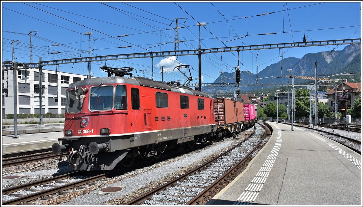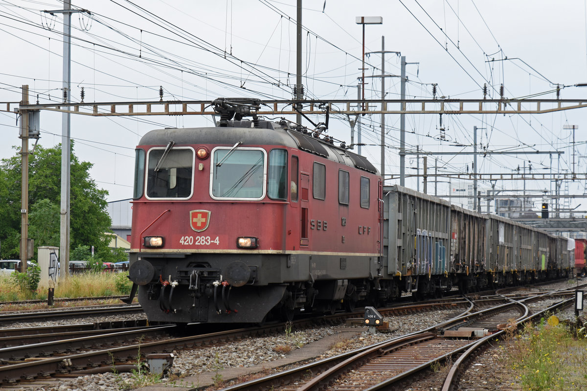 Re 420 283-4 durchfährt den Bahnhof Pratteln. Die Aufnahme stammt vom 29.06.2018.