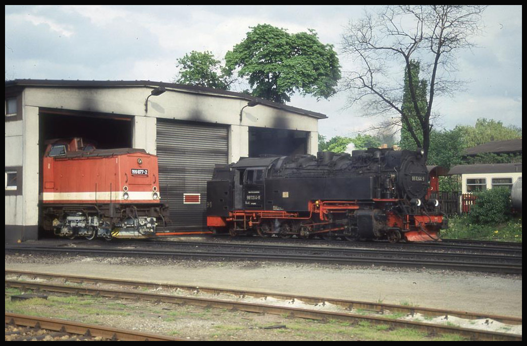 997244 und 199877 gaben sich am 12.5.1994 am Lokschuppen im Bahnhof Wernigerode ein Stelldichein.
