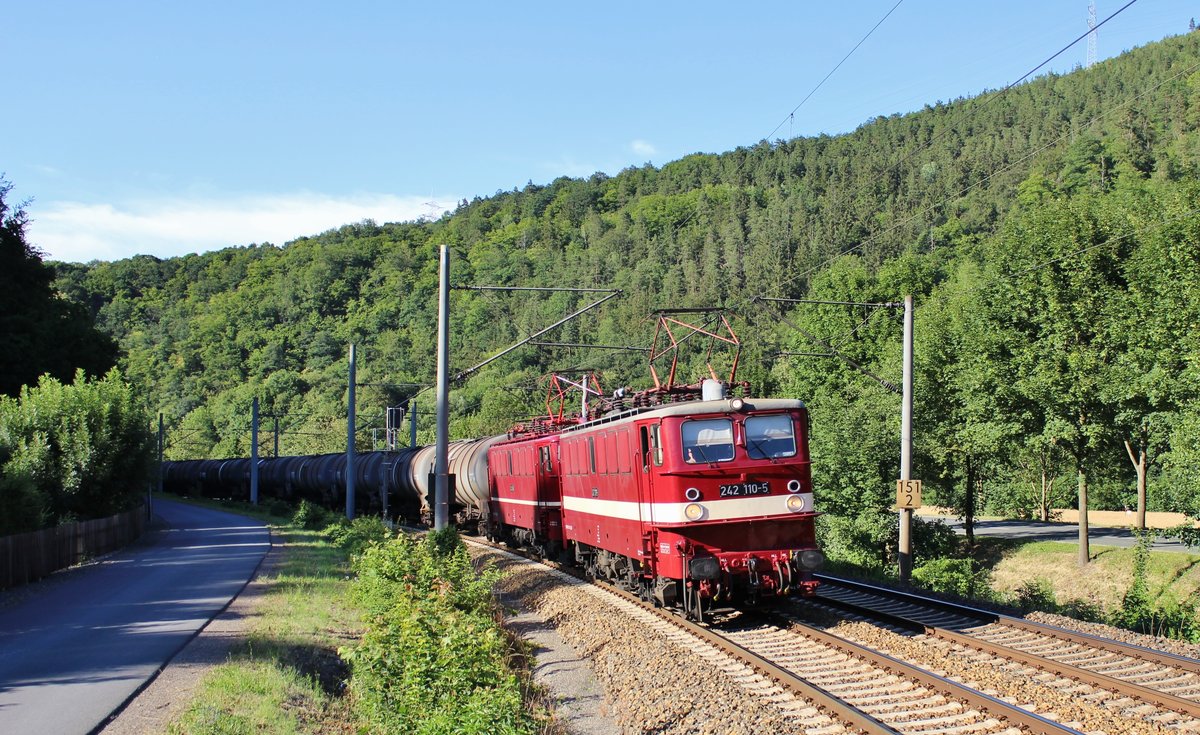 Am 03.07.18 fuhren 242 110-5 und 242 145-1 der EBS einen Kesselzug von Großkorbetha nach Neustadt/Donau duch Hockeroda.