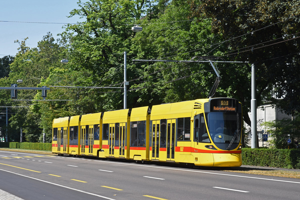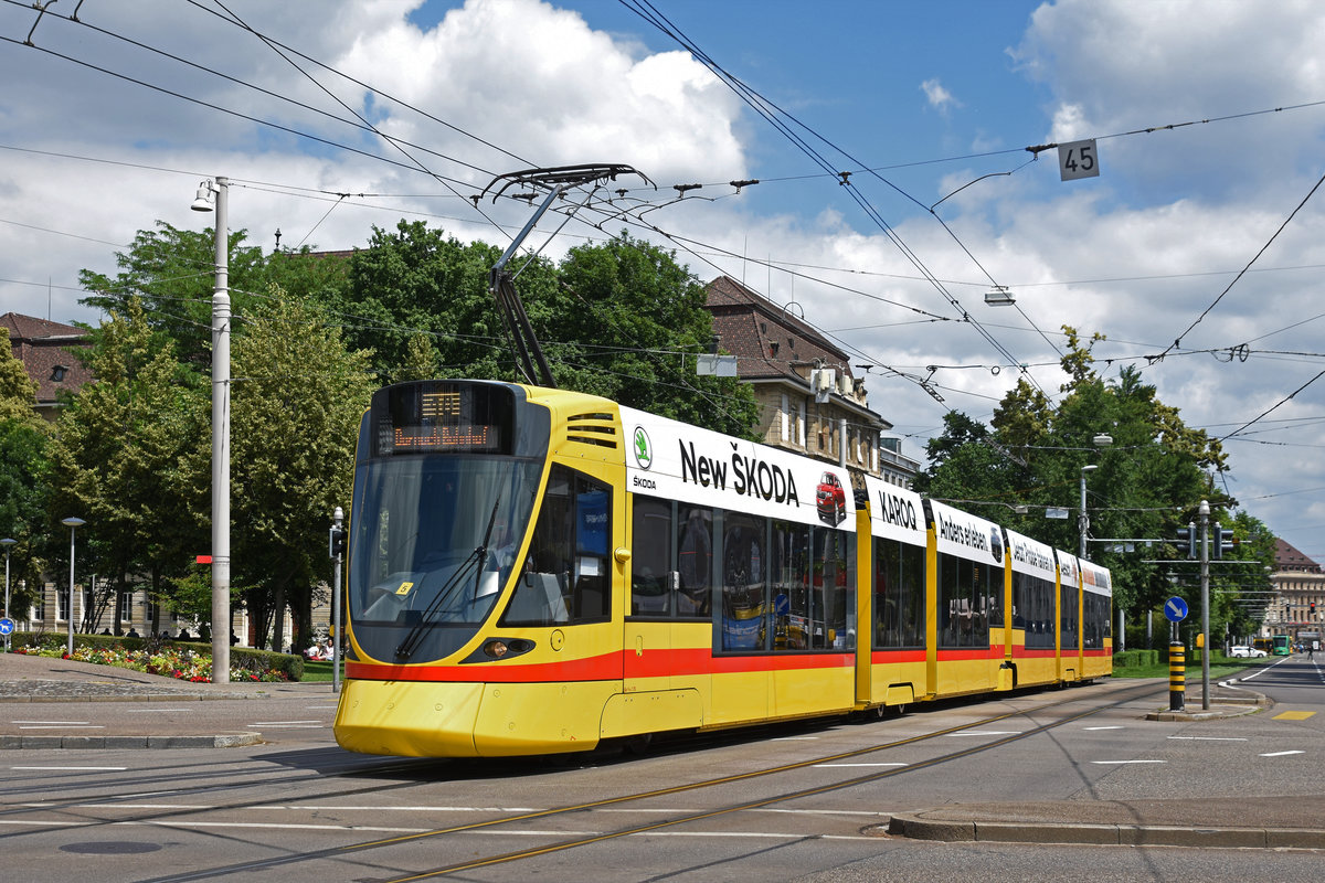 Be 6/10 Tango 166, auf der Linie 10, fährt zur Haltestelle Aeschenplatz. Die Aufnahme stammt vom 01.07.2018.