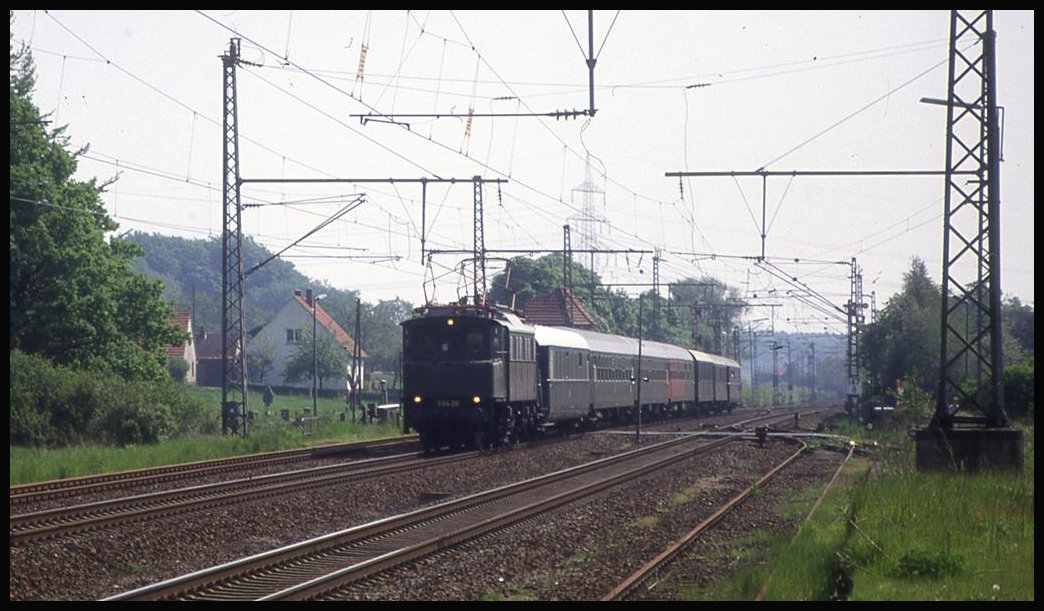 E 0420 ist hier mit einem Sonderzug in Richtung Rheine am 14.5.1994 in Westerkappeln Velpe unterwegs.