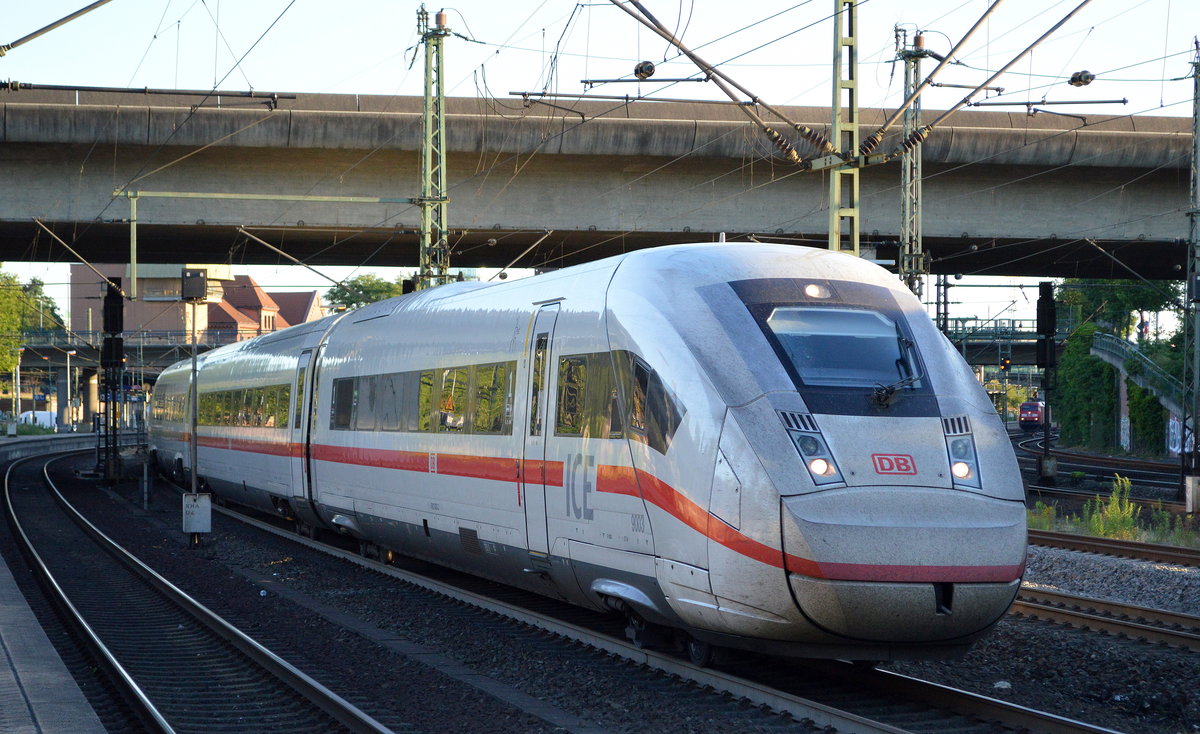 Ein morgendlicher IC (93 80 0812 003-3 D-DB....) verlässt den Bf. Hamburg-Harburg am 30.06.18