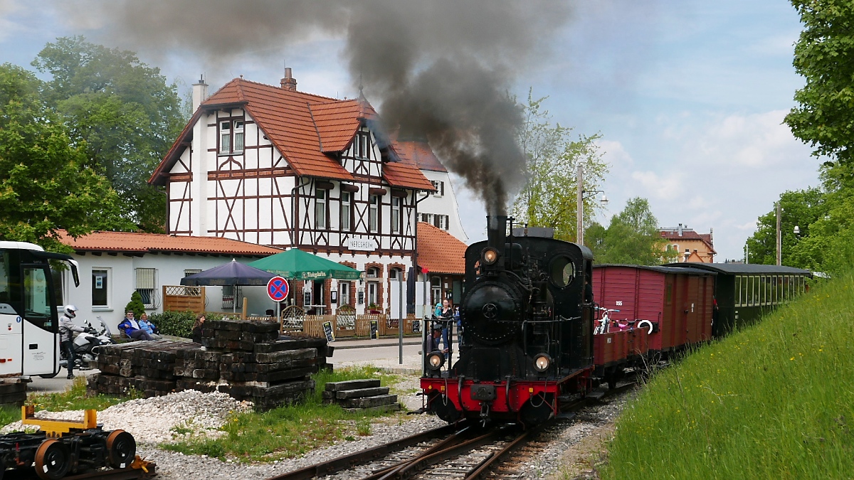 Lok 12 der Härtsfeld-Museumsbahn am Wasserkran in Neresheim am 14.5.2015