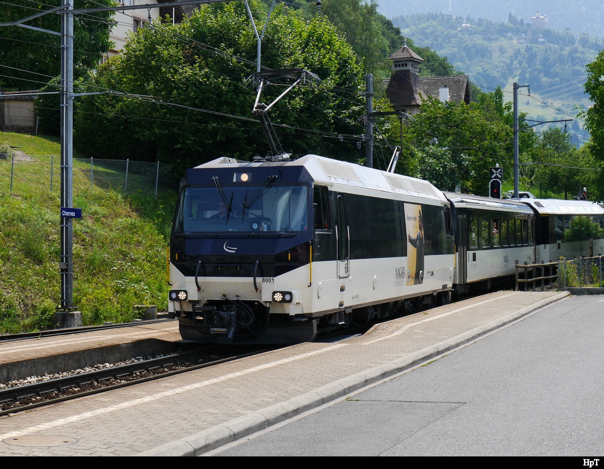MOB / Goldenpass - Ge 4/4 8001 mit Panoramic Express bei der einfahrt in Chernex unterwegs nach Montreux am 14.07.2018