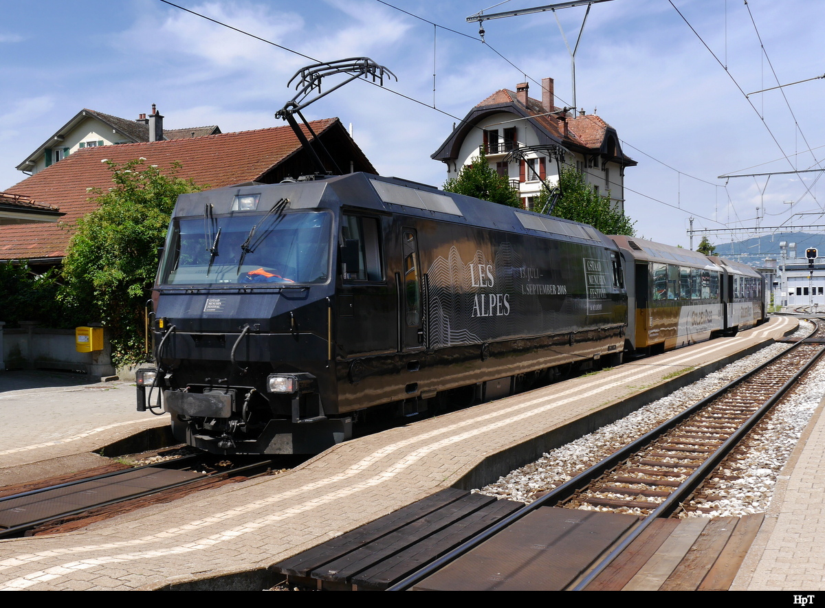 MOB / Goldenpass - Ge 4/4 8001 unterwegs als Lokfahrt im Bahnhof von Montreux am 14.07.2018