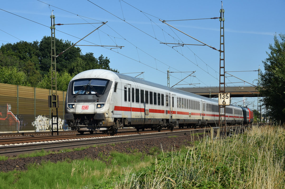 Täglicher Intercity bei wunderschönem Sommerwetter, kommend aus Hamburg mit dem Steuerwagen 61 80 80-91 108-3 in Front. Schiebelok war die 101 085-9. Höhe Bardowick, 03.07.2018.