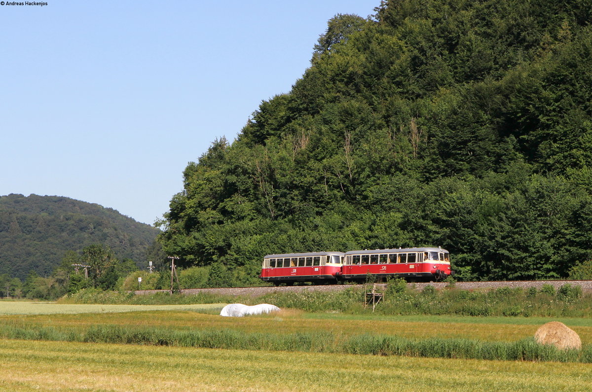 VT 5 und VS 14 als RB 22283 (Schelklingen-Münsingen) in Oberheutal 1.7.18