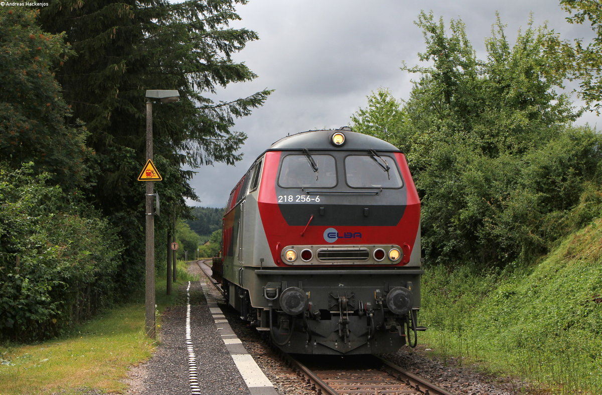 Gerade fährt,am 17.7.2018,der LINT-Triebwagenzug der HELLERTALBAHN,aus