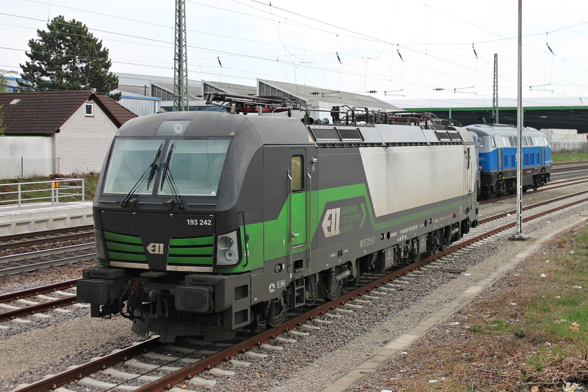 Am Nachmittag des 04.04.2017 stand ELL/ecco Rail 193 242 abgestellt im Bahnhof von Efringen Kirchen und wartete dort auf ihren nächsten Einsatz.