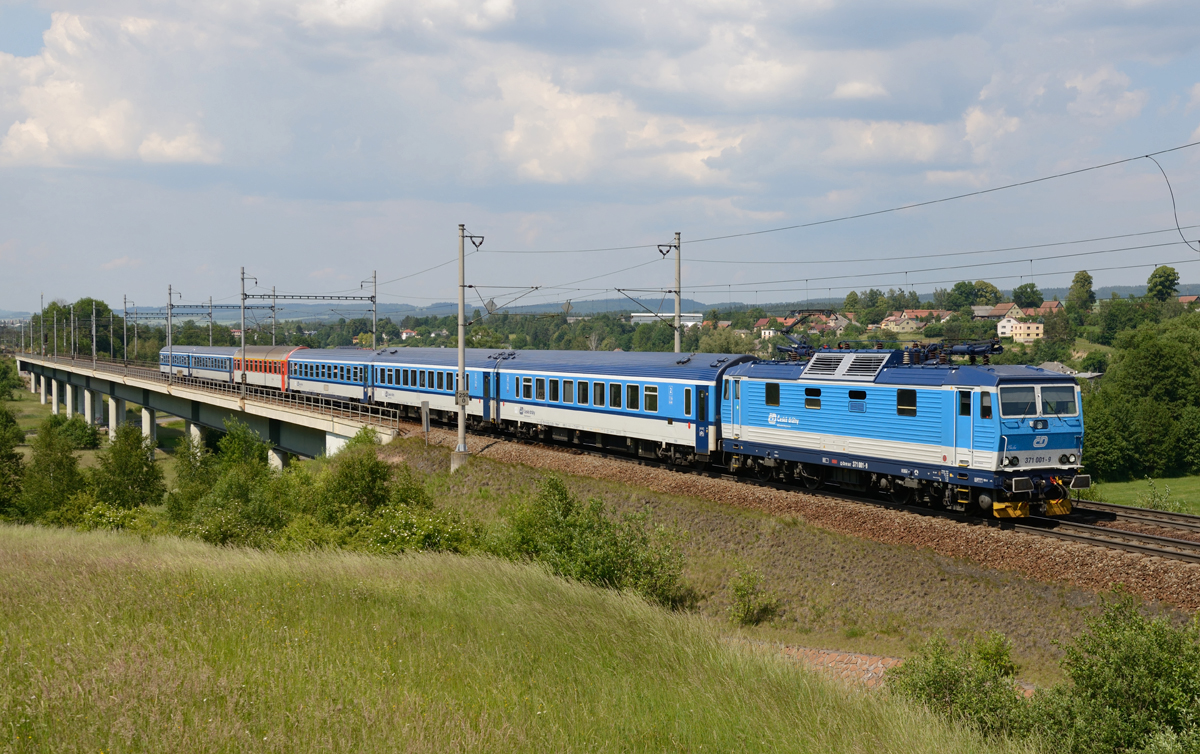 Die Zweisystemlokomotive 371 001 "Lucka" war am 27.05.2018 dem Rx 891 "Slovácký expres" (Praha-Smíchov-Luhačovice) vorgespannt, und wurde von mir bei Česká Třebová fotografiert.