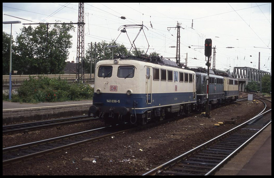 Ein Lokzug mit 140036, 140573 und 140732 fährt hier am 13.8.1994 um 15.55 Uhr durch Köln Deutz in Richtung Hauptbahnhof Köln.