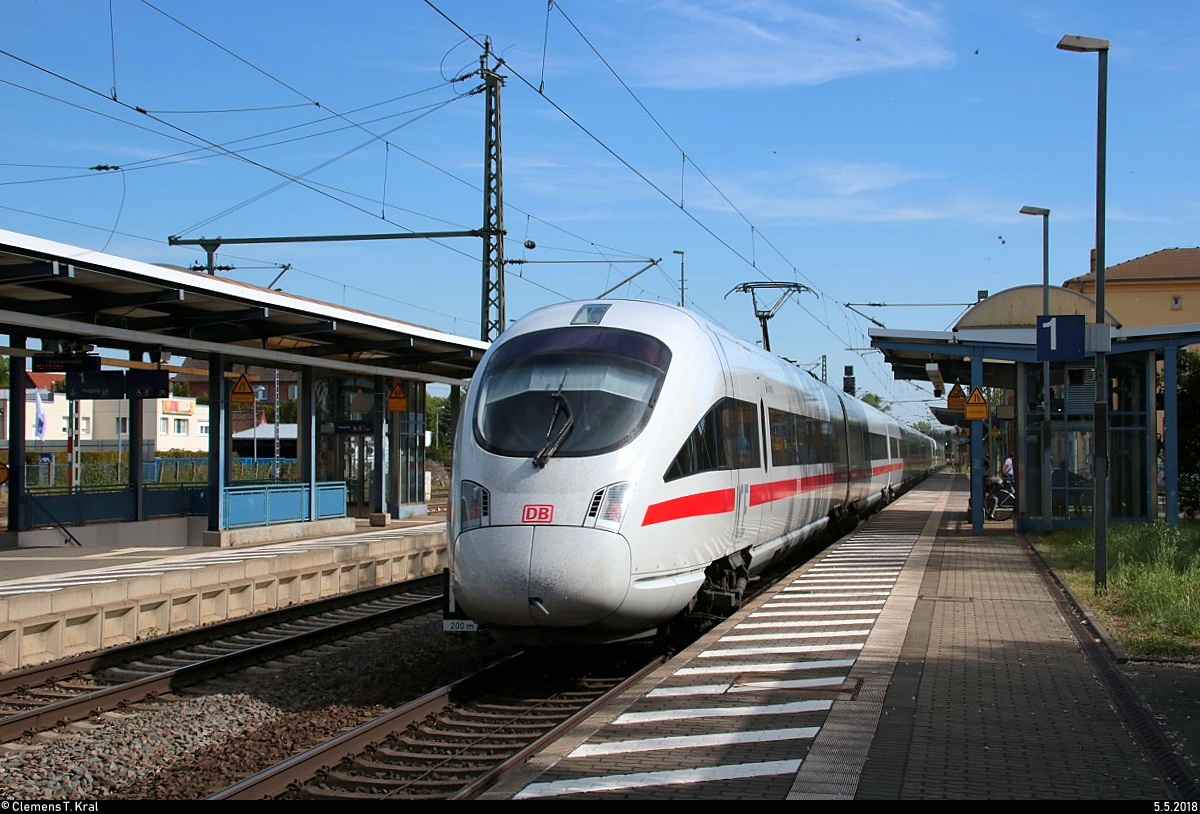 Nachschuss auf 411 564 (Tz 1164 "Rödental") und 411 528 (Tz 1128 "Reutlingen") als verspäteter ICE 1713 "Arkona" (Linie 28) von Ostseebad Binz nach München Hbf, die den Bahnhof Delitzsch unt Bf auf der Bahnstrecke Trebnitz–Leipzig (KBS 251) durchfahren. [5.5.2018 | 16:18 Uhr]