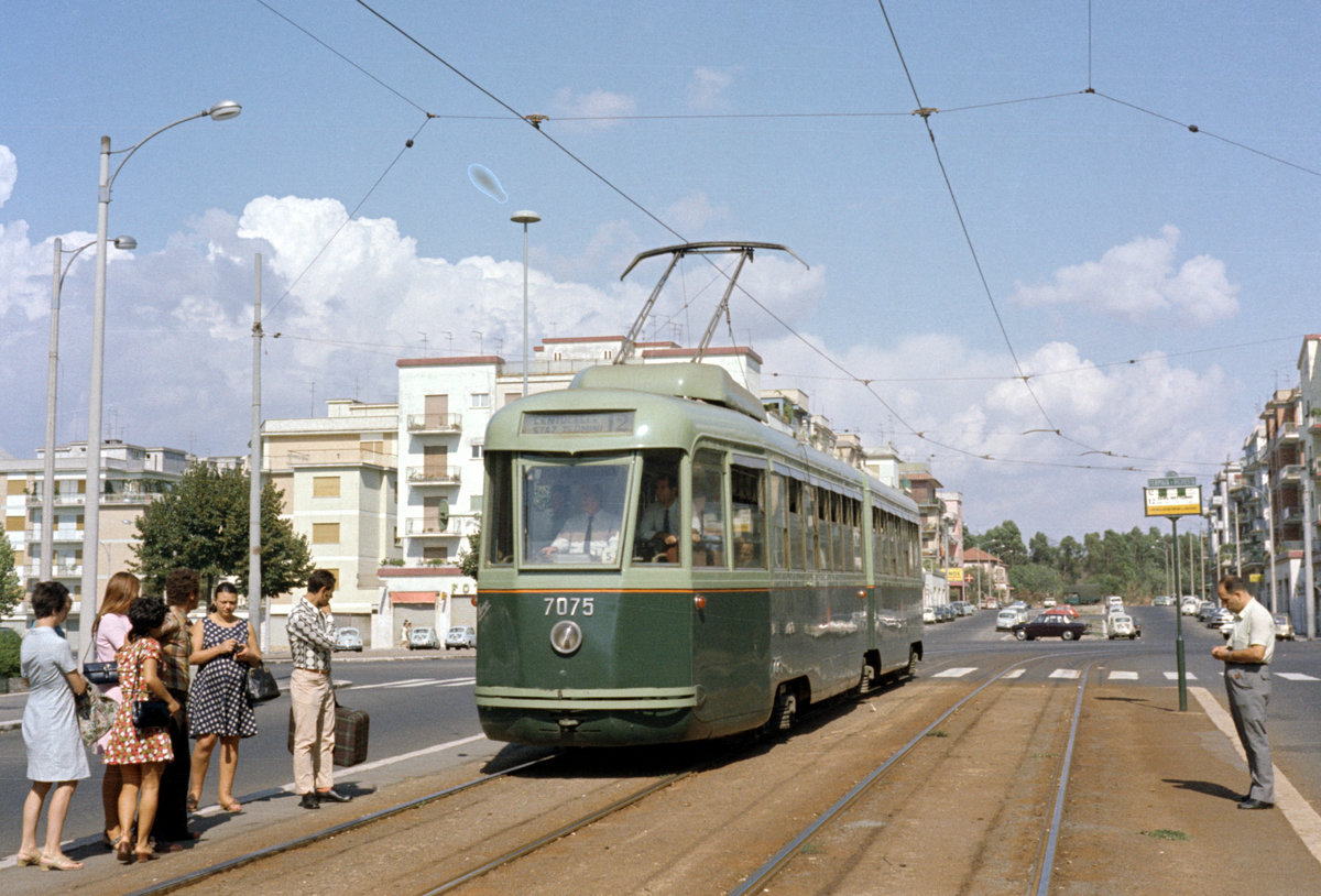 Roma / Rom ATAC Linea tranviaria / SL 12 (TAS 7075) Via Federico Delpino am 25. August 1970. - Scan eines Farbnegativs. Film: Kodak Kodacolor X.
