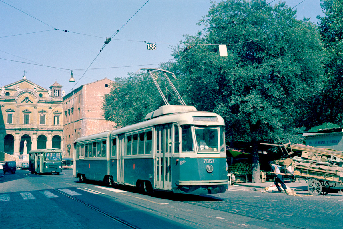 Roma / Rom ATAC Linea tranviaria / SL 12 (TAS 7067) Piazza Vittorio Emanuele II am 25. August 1970. - Scan eines Farbnegativs. Film: Kodak Kodacolor X.