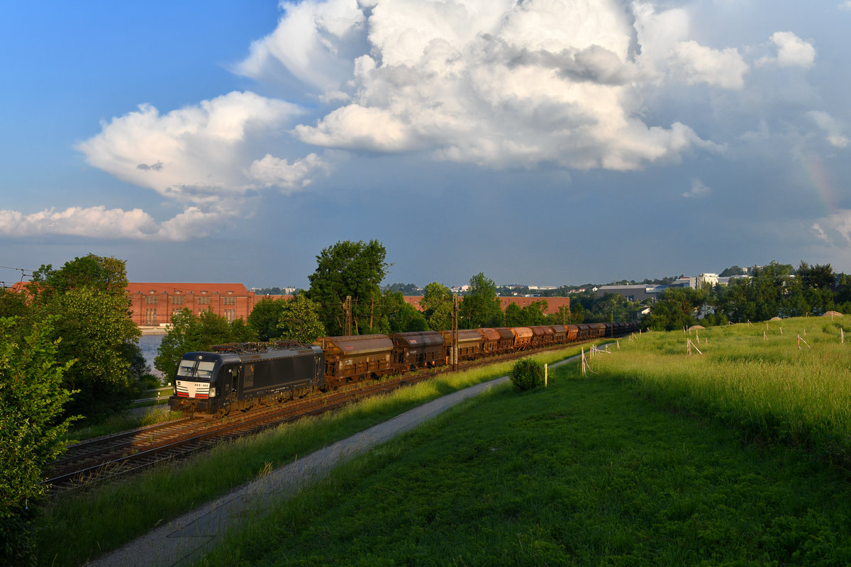 Doppeltraktion  DB Cargo Deutschland AG   193 330  [NVR-Number: 91 80 6193 330-8 D-DB] +   193 355  [NVR-Number: 91 80 6193 355-5 D-DB mit Erzzug (leer) Richtung hamburg am 18.07.18 bf. Flughafen Berlin-Schönefeld.