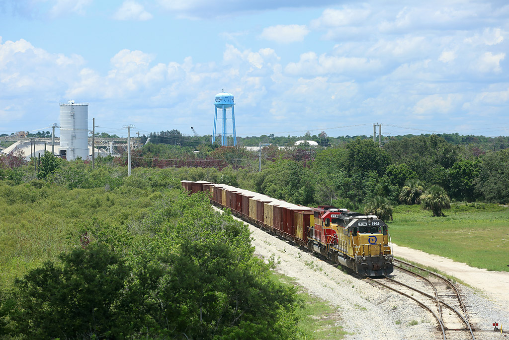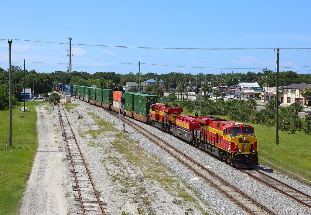 812 & 818 pass New Smyrna Beach whilst working FEC101-04, 1330 Jacksonville Bowden Yard - Miami Hialeah, 4 July 2018