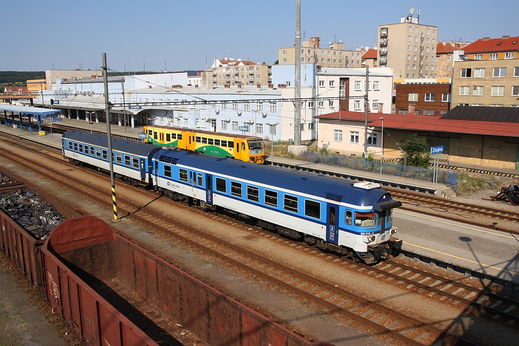CD 842 032-5 am 14.Juli 2018 im Bahnhof Znojmo.