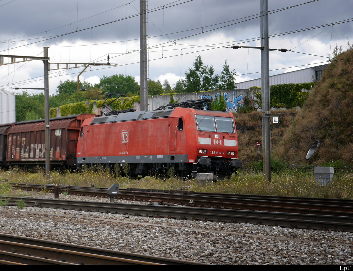Am 04.04.2017 fuhr die ziemlich frisch lackierte 185 102-1 mit einem gemischten Güterzug (Chiasso - Mannheim Rbf) durch die Überholgleise von Müllheim (Baden) gen Norden.