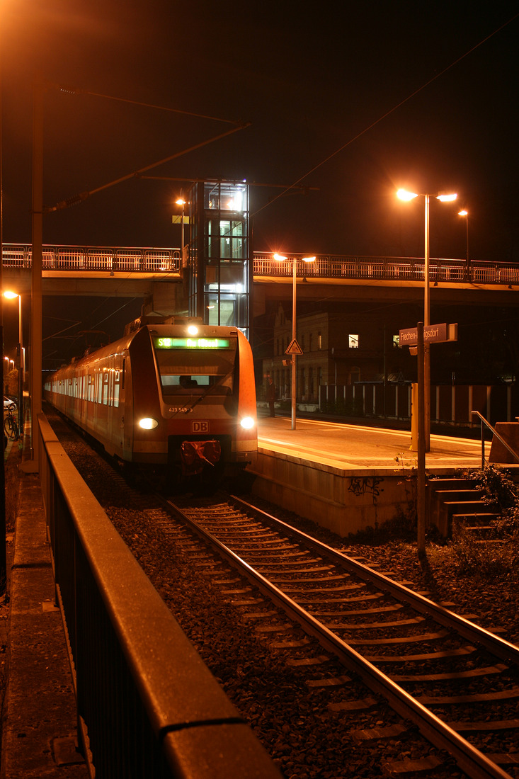 DB Regio 423 049 + 423 ??? wurden zu abendlicher Stunde am Haltepunkt Frechen-Königsdorf fotografiert.