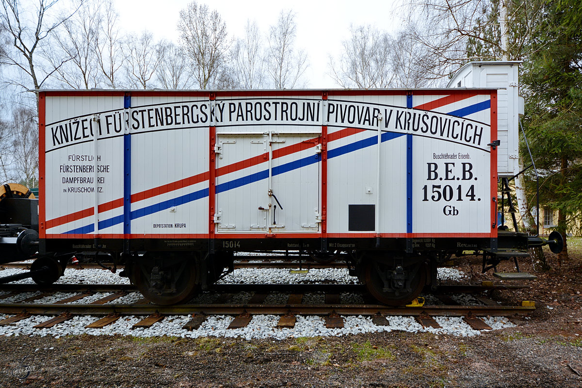 Ein schön restaurierter Güterwagen Anfang April 2018 im Eisenbahnmuseum Lužná u Rakovníka.