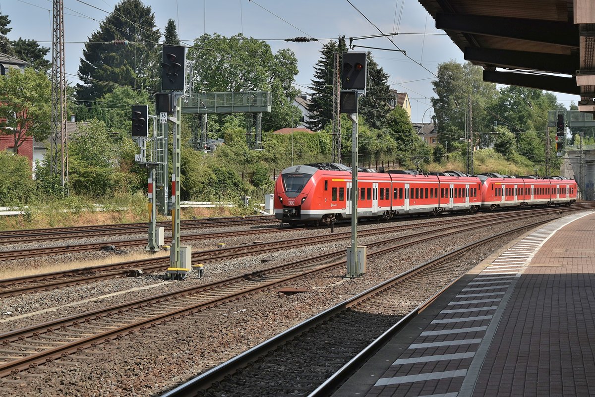 DB Regio 423 036 + 423 ??? fahren in den Haltepunkt Lövenich ein, der sich in Köln befindet.