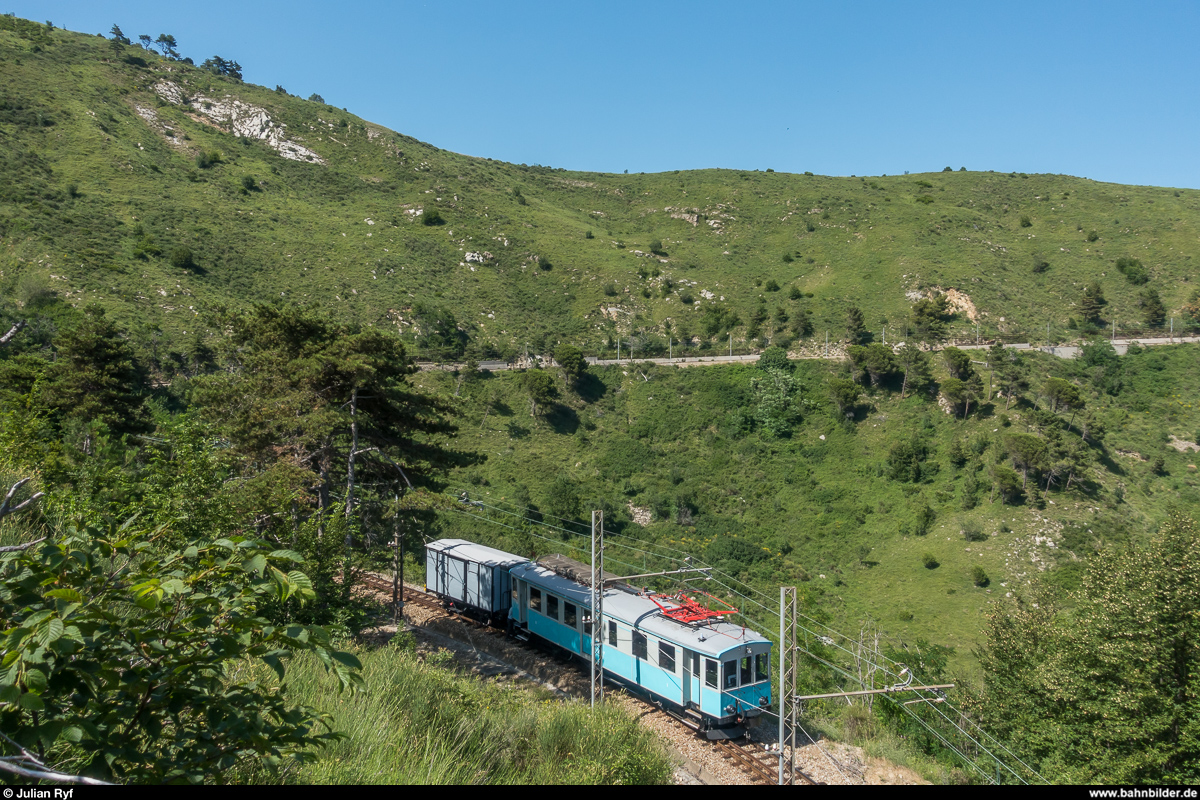 Am zweiten Tag der Fotofahrt auf der FGC fuhren wir mit dem erst wenige Wochen zuvor fertiggestellten Triebwagen A2, welcher optisch in den Zustand bei der Fleimstalbahn zurückgebaut wurde.<br>