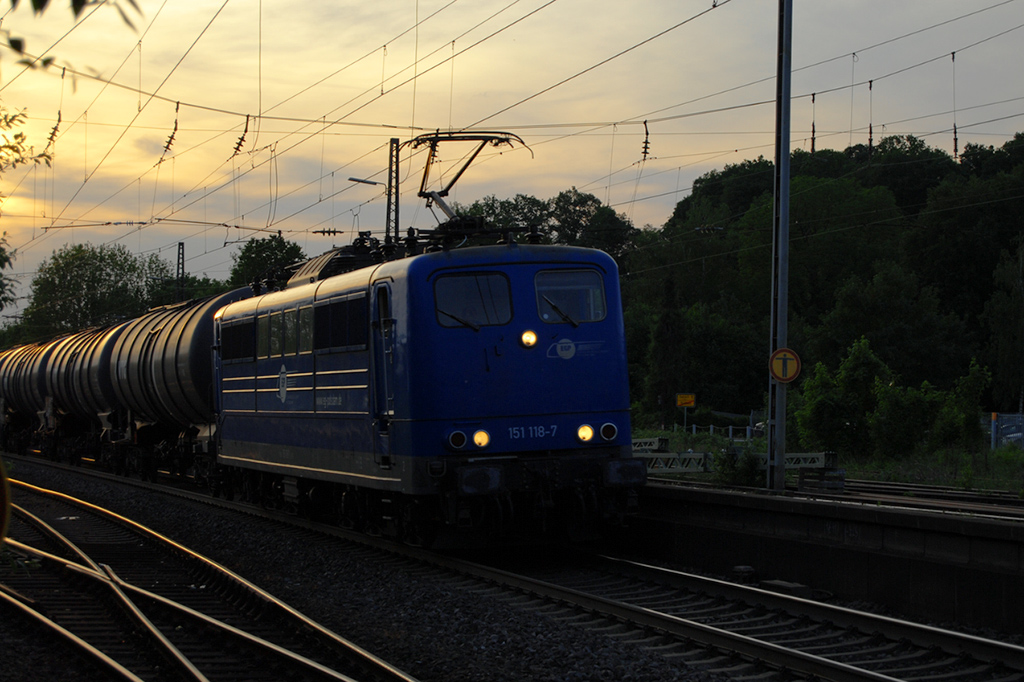 12.05.2018 Bahnhof Süßen, unverhofft kommt oft - und dann noch in der Dämmererung und bei Gegenlicht - 151 118-7 überraschte den Fotografen auf dem linken Fuß.