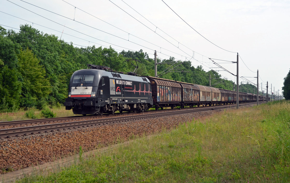Am 10.06.18 führte 182 570 den Papierzug von Rostock nach Italien durch Burgkemnitz Richtung Bitterfeld.