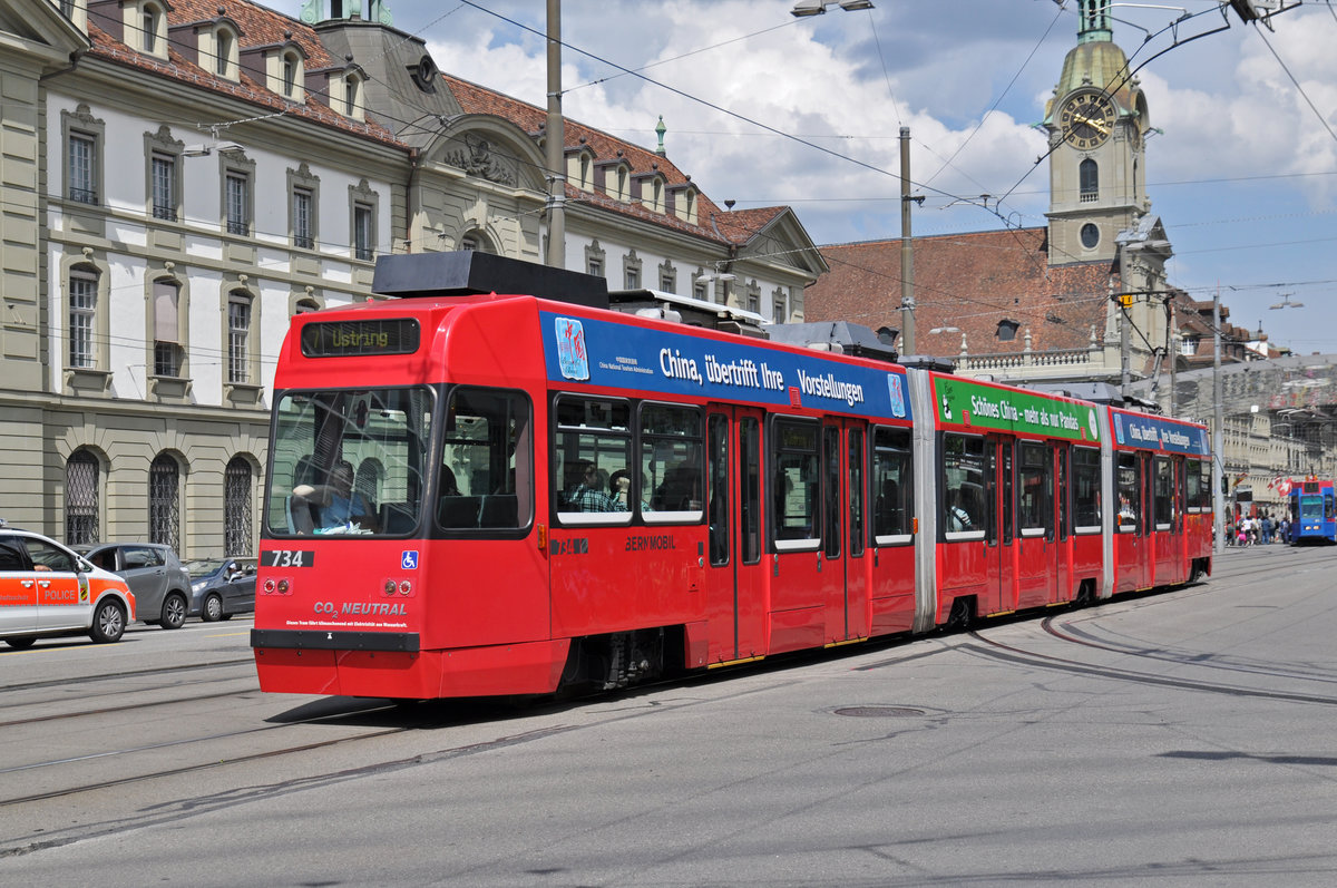Be 4/6 734 Vevey Tram, auf der Linie 7, fährt zur Haltestelle beim Bahnhof Bern. Die Aufnahme stammt vom 22.05.2018.