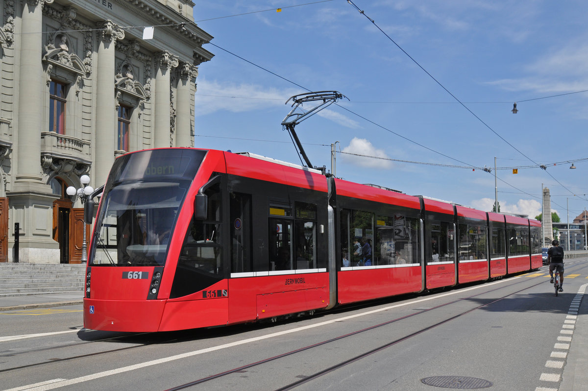 Be 6/8 Combino 661, auf der Linie 9, fährt zur Haltestelle Zytglogge. Die Aufnahme stammt vom 22.05.2018.