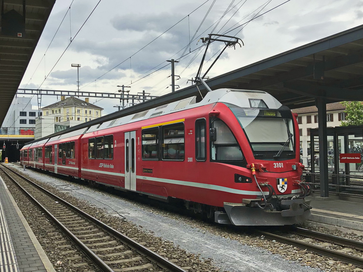 Chur am 28. Juni 2018 steht ABe 8/12 3101 zur Fahrt nach Thusis bereit