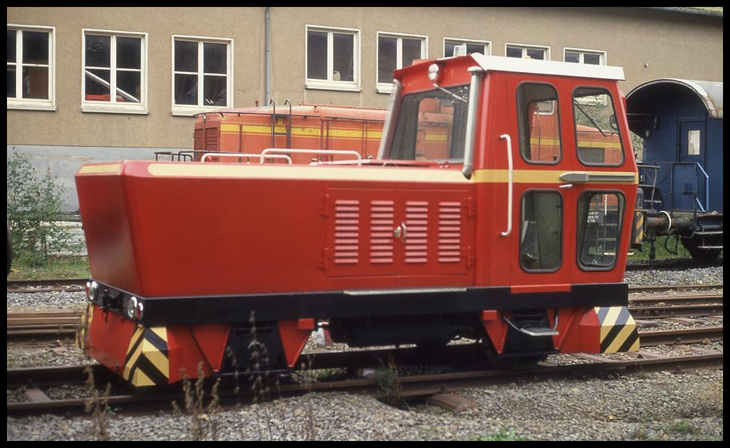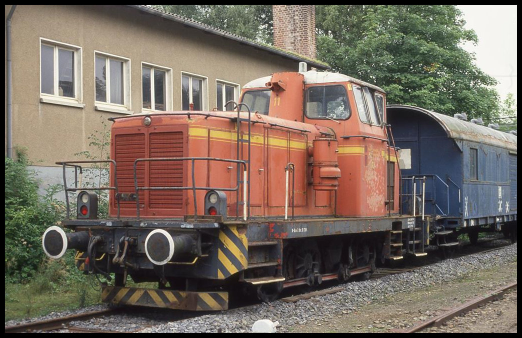 Einst gehörte die Deutz Lok 11 zum Bestand der Georgsmarienhütte, deren Lackierung sie hier noch trägt. Am 11.9.1994 hatte sie vorübergehend der Weg zu den Osnabrücker Dampflok Freunden gefunden. Von dort ist sie inzwischen aber weiter verkauft worden.