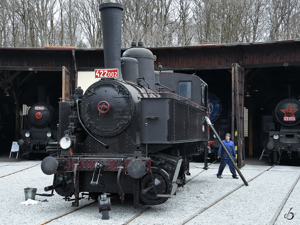 Die Dampflokomotive 524 1110 Anfang April 2018 im Eisenbahnmuseum Lužná u Rakovníka.