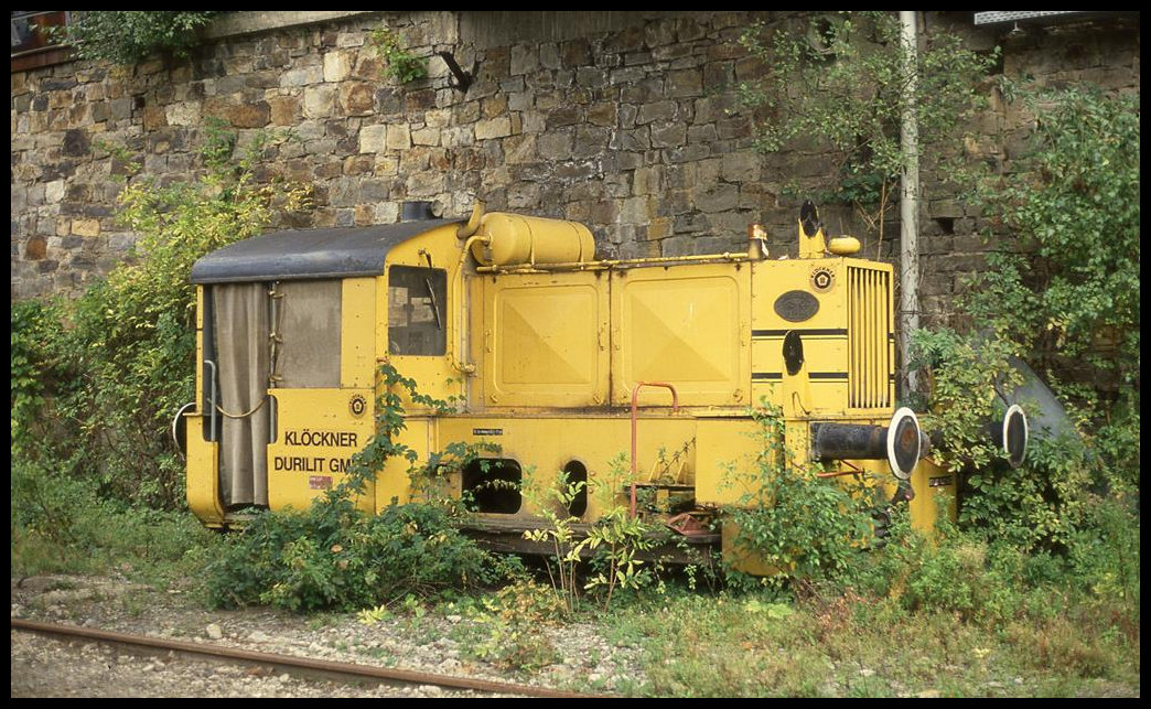 Köf Rangierlok 25005 der Klöckner Durilit im Steinbruch Piesberg in Osnabrück am 11.9.1994.