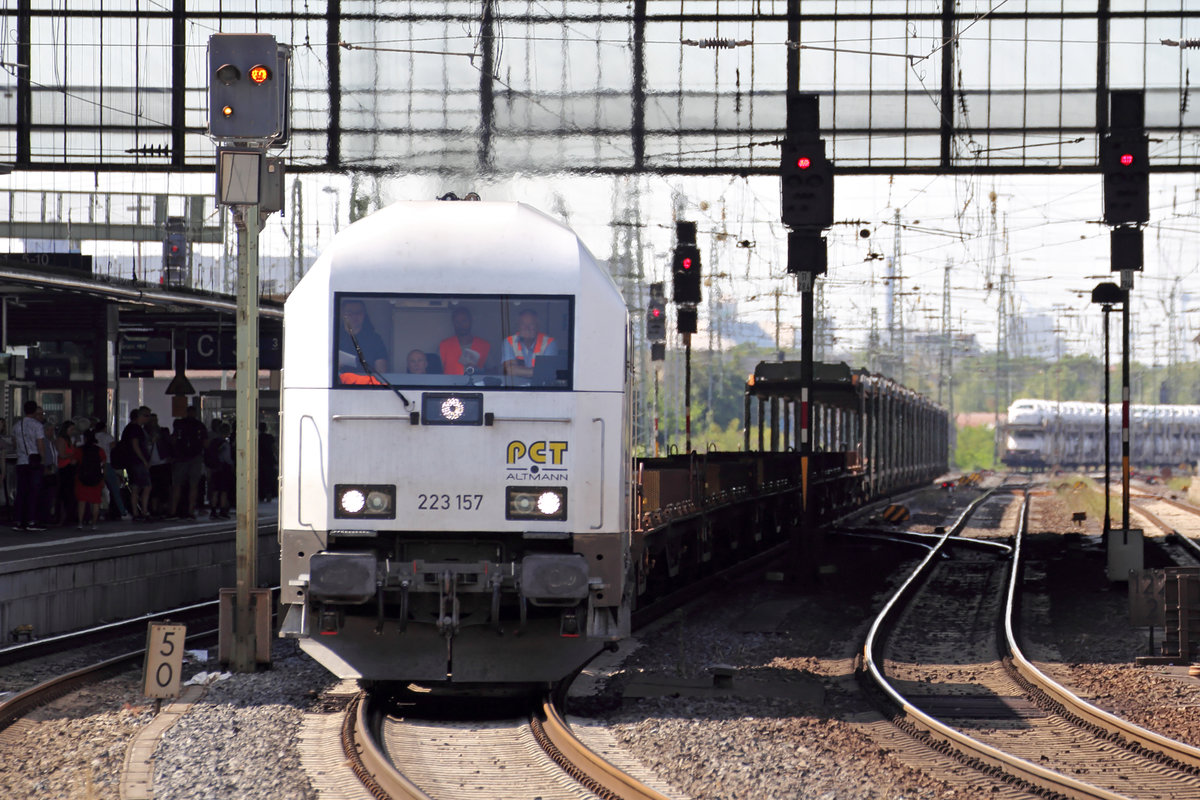 155 206 führte am 24.06.18 einen gemischten Güterzug auf dem Gegengleis durch Bitterfeld Richtung Halle/Leipzig.