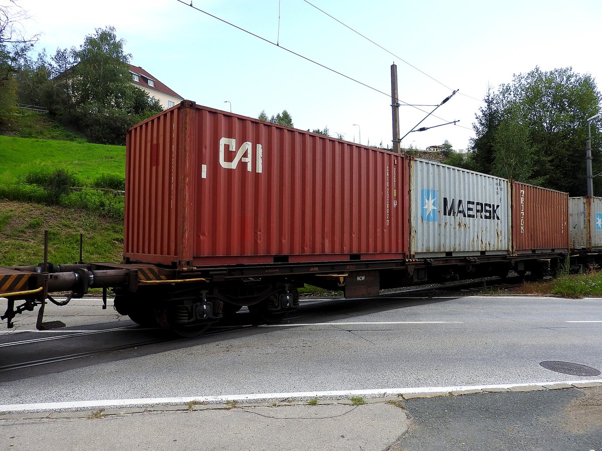 Sgjss 31 81 453 0262-2, quert mit drei Containern eine Straße bei Treibach; 170825