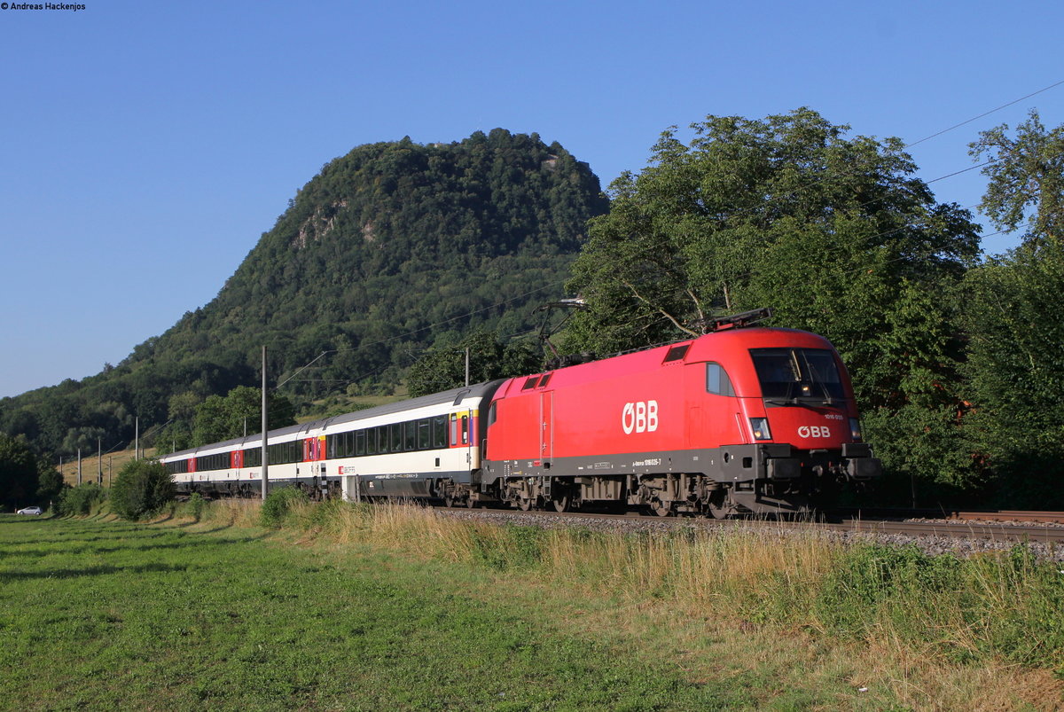 1016 020 mit einem Langschienenzug am 24.07.2018 bei Seestetten.