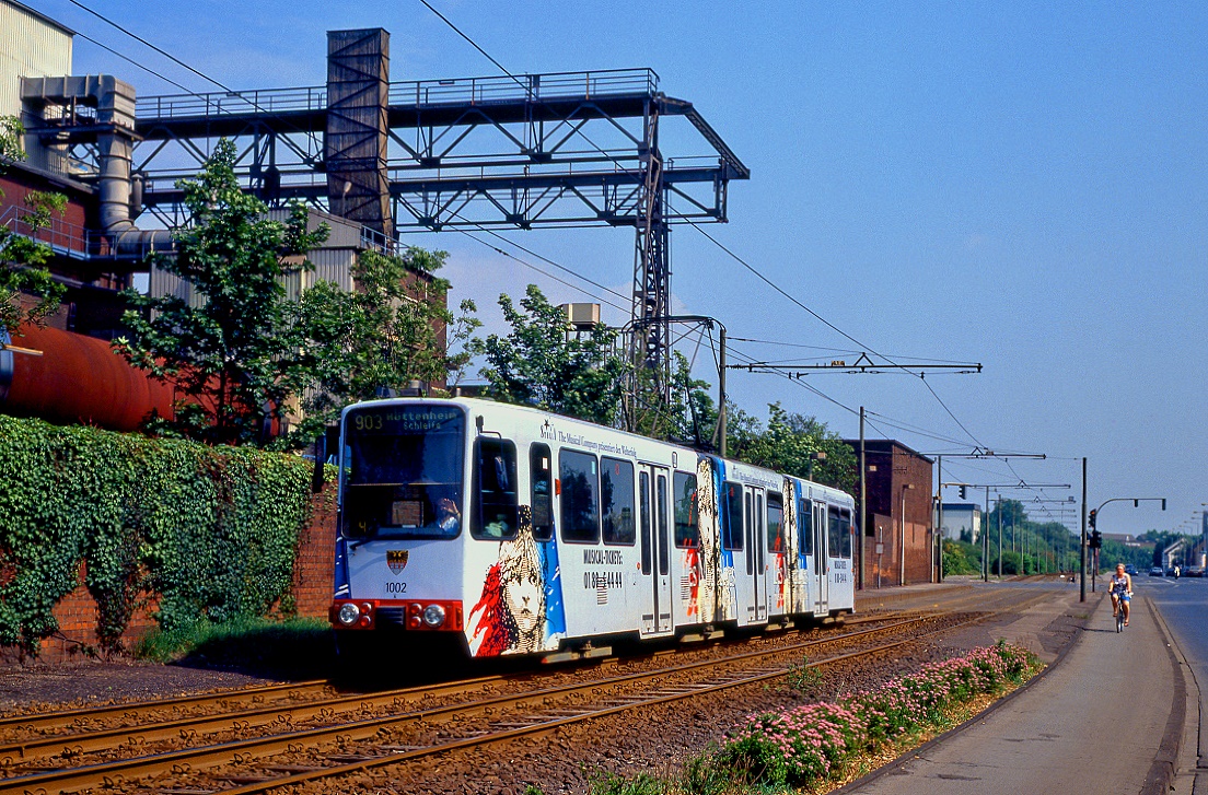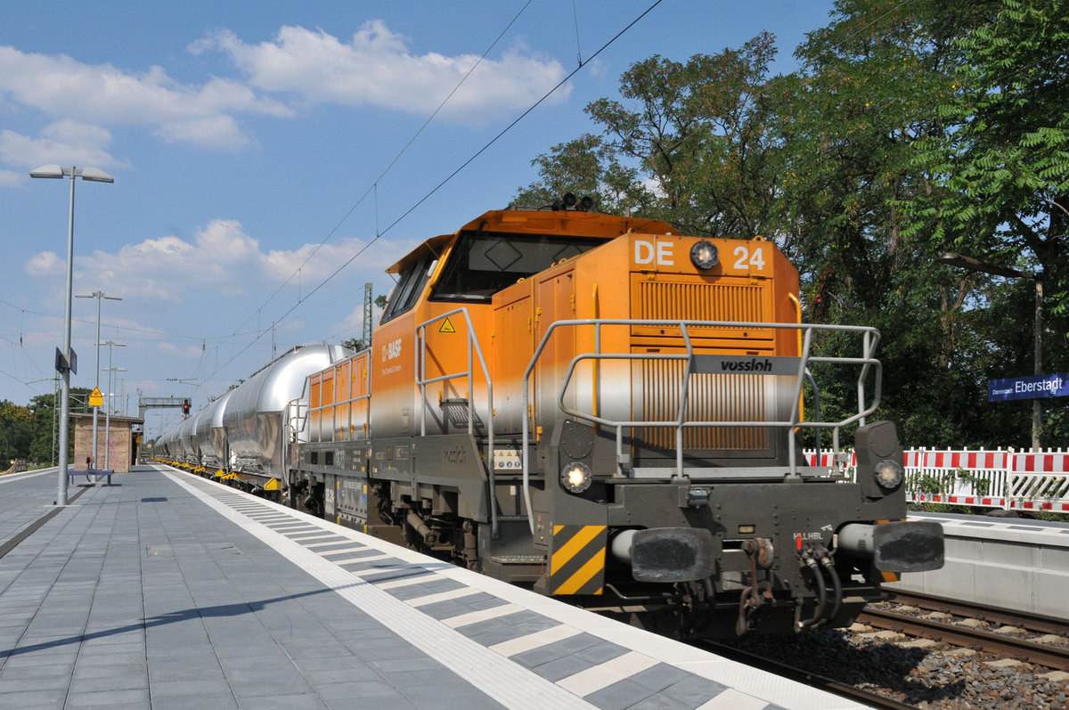 Was´n dat? Eine weiße fensterlose Dampflok? Könnte man meinen, ist jedoch ein alter Kesselwagen mit einem Dieseltriebwagen dahinter.
