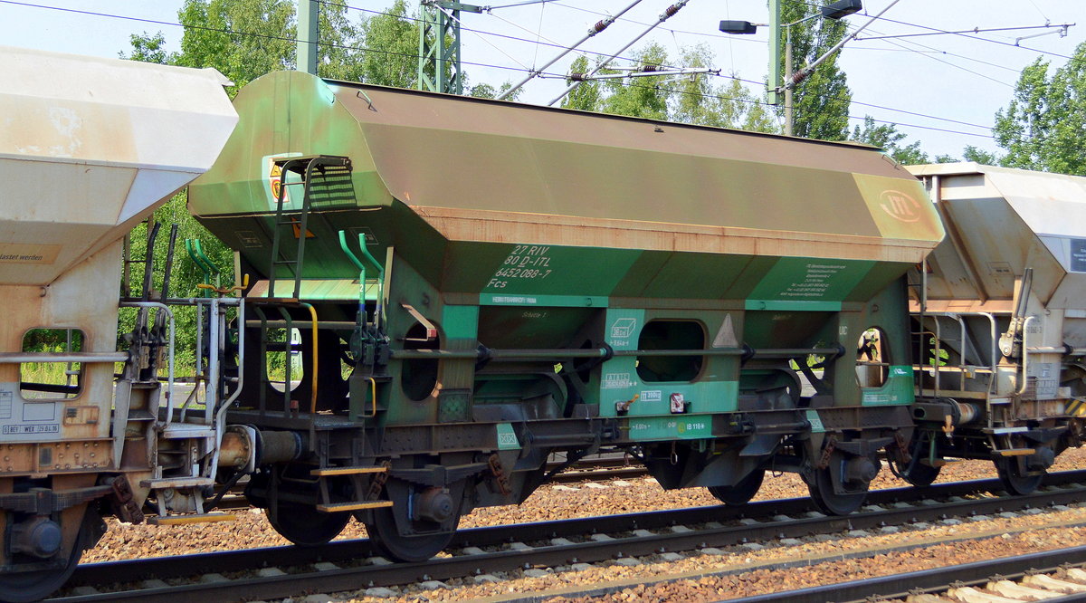 Schüttgutwagen mit dosierbarer Schwerkraftentladung von ITL mit der Nr. 27 RIV 80 D-ITL 6452 088-7 Fcs am 18.07.18 Bf. Flughafen Berlin-Schönefeld.