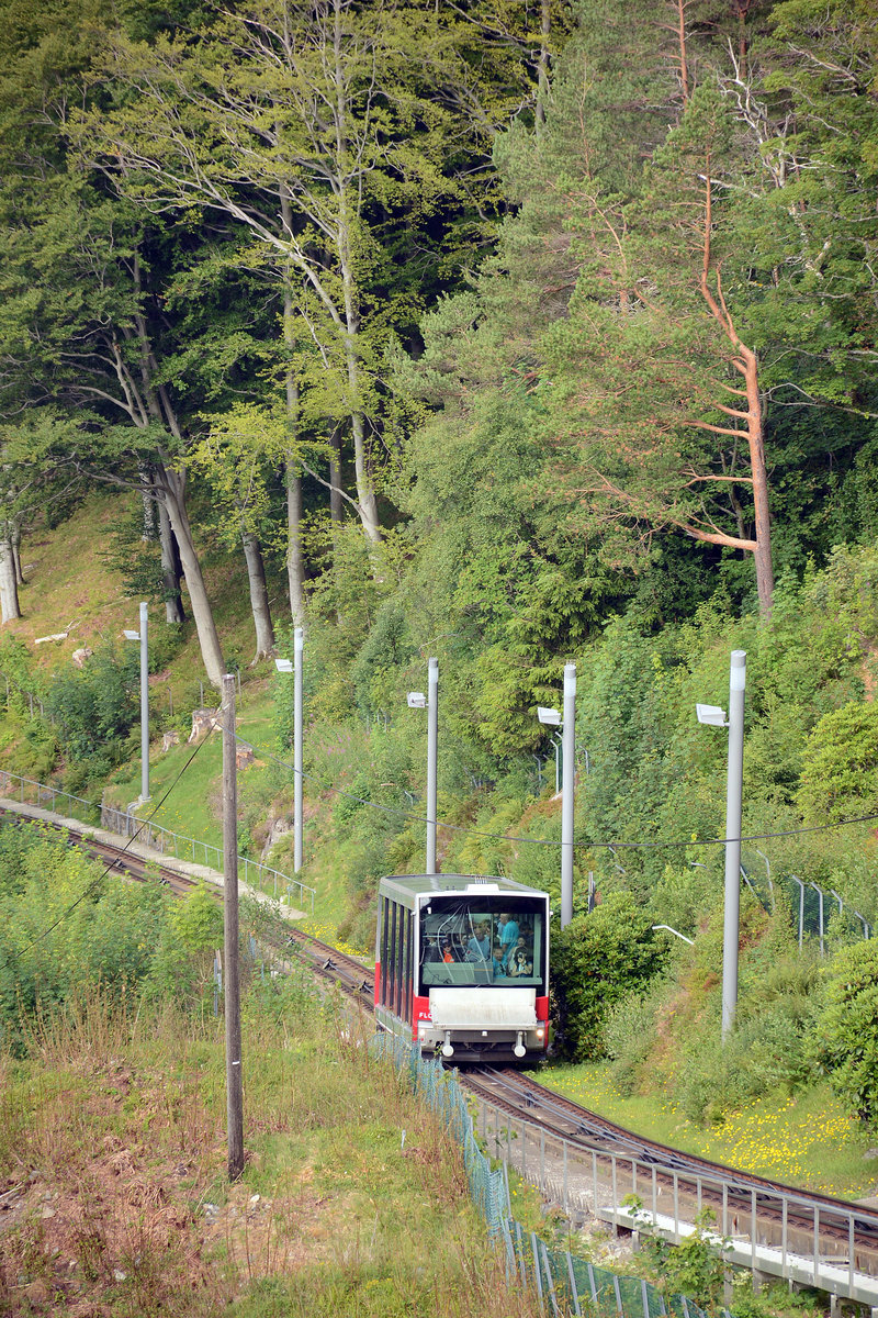 Nach dem Kübgraben-Viadukt wurde der ganze Hang gerodet,das jetzt einen herrlichen Blick auf die Strecke mit dem ehemaligen Hotel und Schneeberg bietet,wie hier bei G-49415 mit 1144.282+1116 am 25.7.18