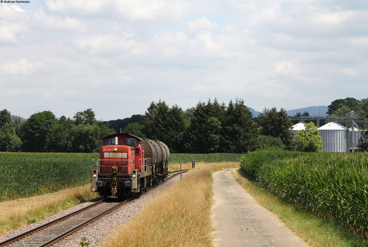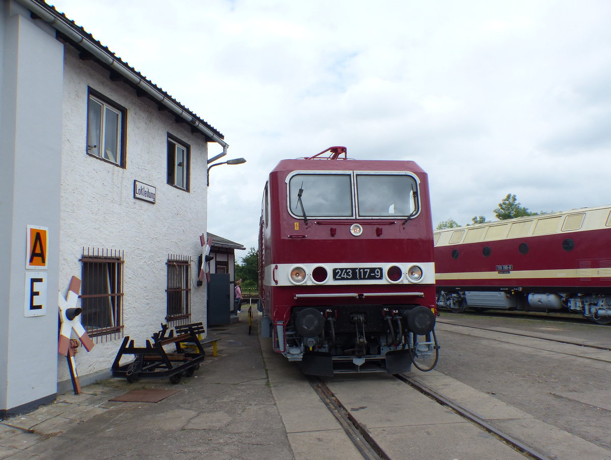 A.D.E.Maxima 264 007 passte,am 25.Juni 2018,nicht mehr in den Anschluß Grimmen Schützenplatz,so das ich die Lok vor dem Tor fotografieren konnte.