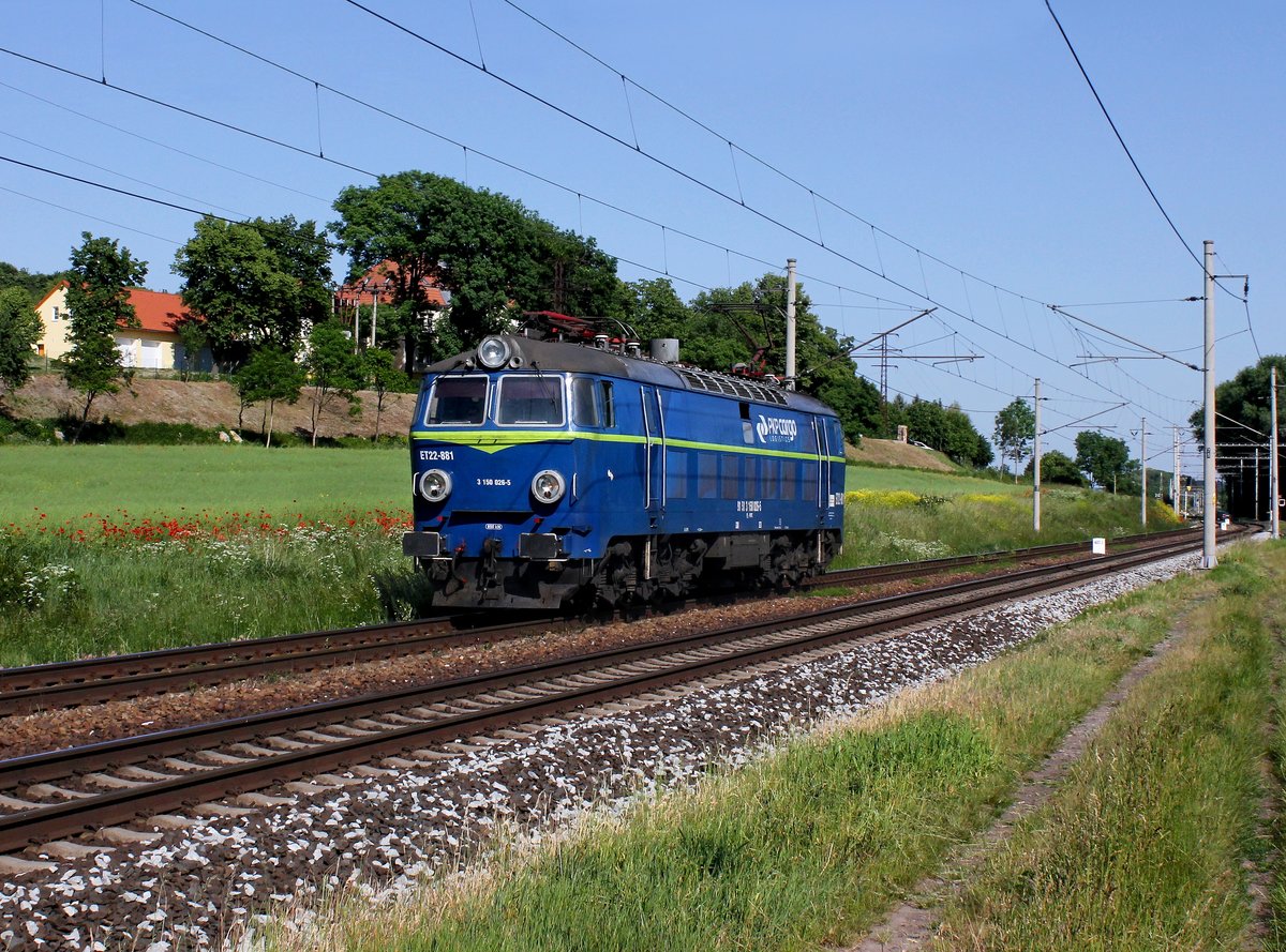Die ET22 881 am 04.06.2015 unterwegs bei Křešice.