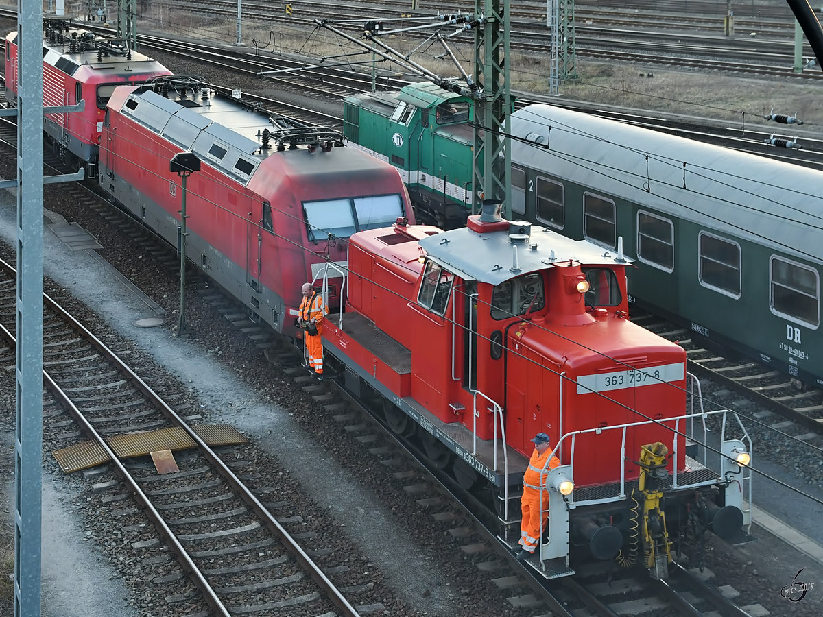 Scheinanfahrt von 199 861 mit Sonder-GmP am 21.04.2018 am Blocksignal kurz vor dem Bahnübergang Brockenstraße.