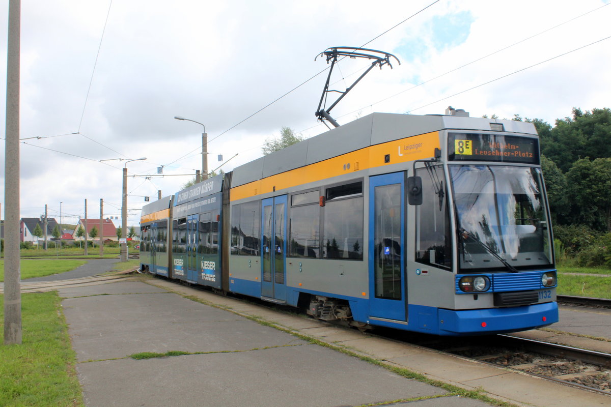 Leipzig LVB SL 8E (DWA NGT8 (LVB-Typ 36) 1132) Paunsdorf Nord (Endstelle - Einstieg) am 25. Juli 2017.