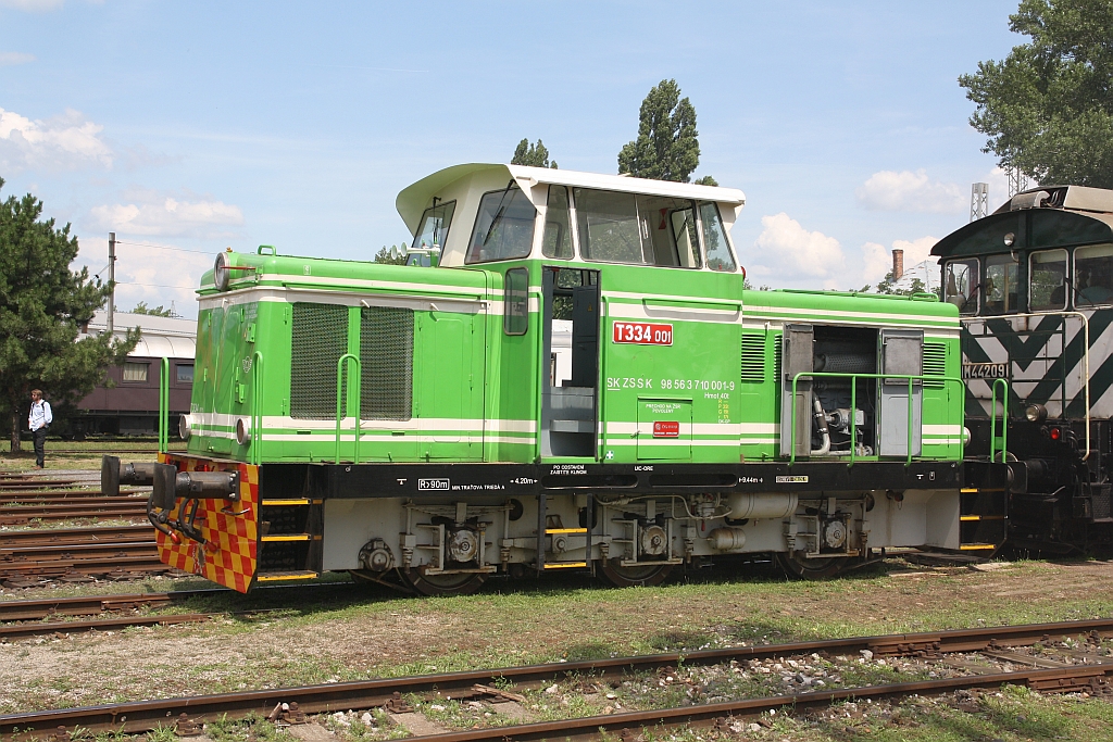 SK-ZSSK 98 56 3 710 001-9, historisch angeschrieben als CSD T344 001, am 16.Juni 2018 beim "RENDEZ 2018" im ZSR Eisenbahnmuseum in Bratislava východ.