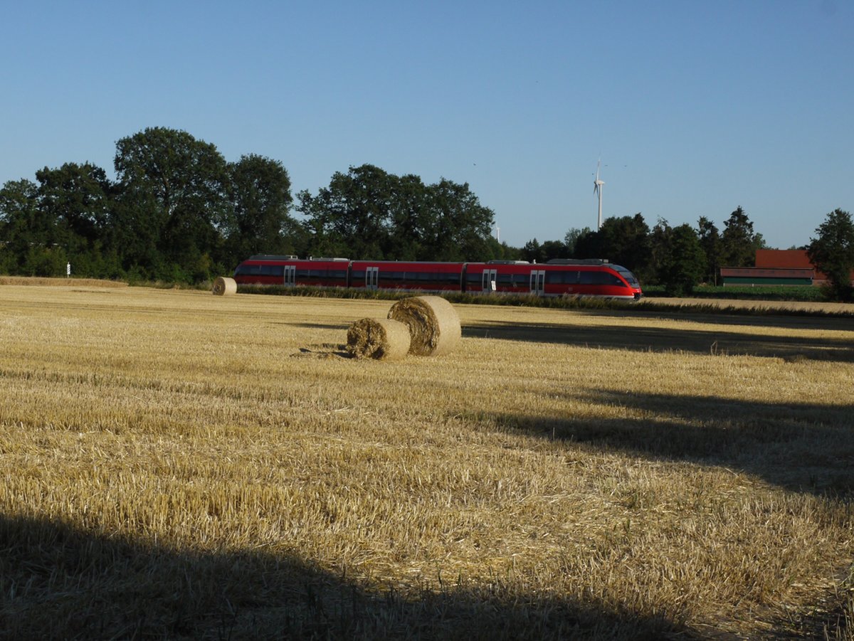 Vom weiten kann man den 644 045 hören wie er den Bahnhof Ochtrup als Zug 14996 verlässt in Richtung Gronau. 02.07.2018