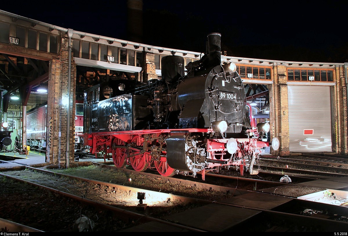 89 1004 der Traditionsgemeinschaft Bw Halle P e.V. wurde vor dem Ringlokschuppen im DB Museum Halle (Saale) ins rechte Licht gerückt.