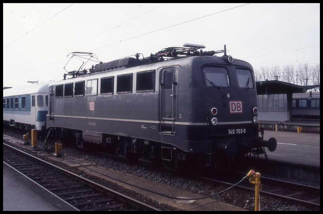 140703 fährt hier am 18.2.1995 mit einem Nahverkehrszug in Emden HBF ein.
